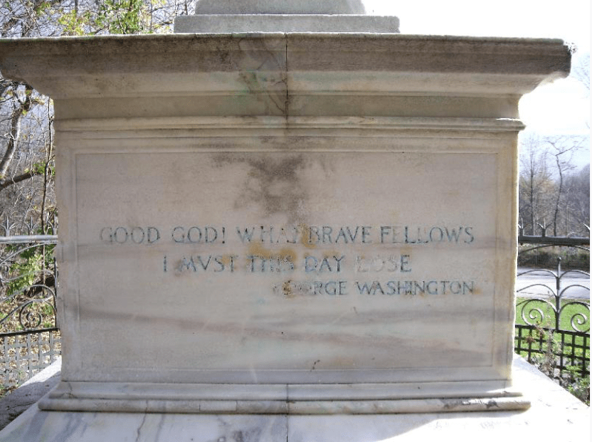 Of course Washington learned from this defeat and went on to win the war. In Prospect Park, New York, the Maryland Monument bears the words of Washington’s cry of anguish.