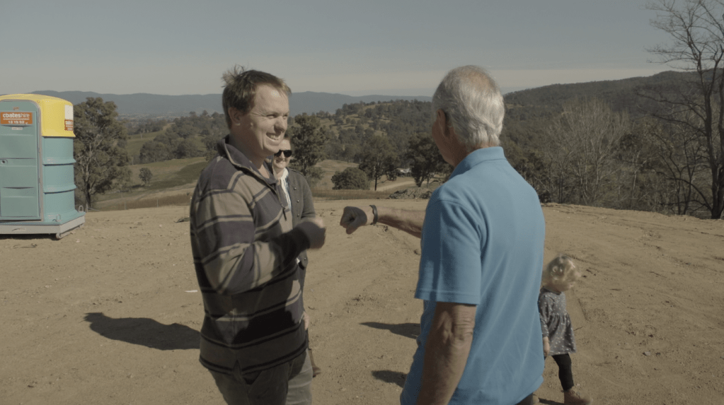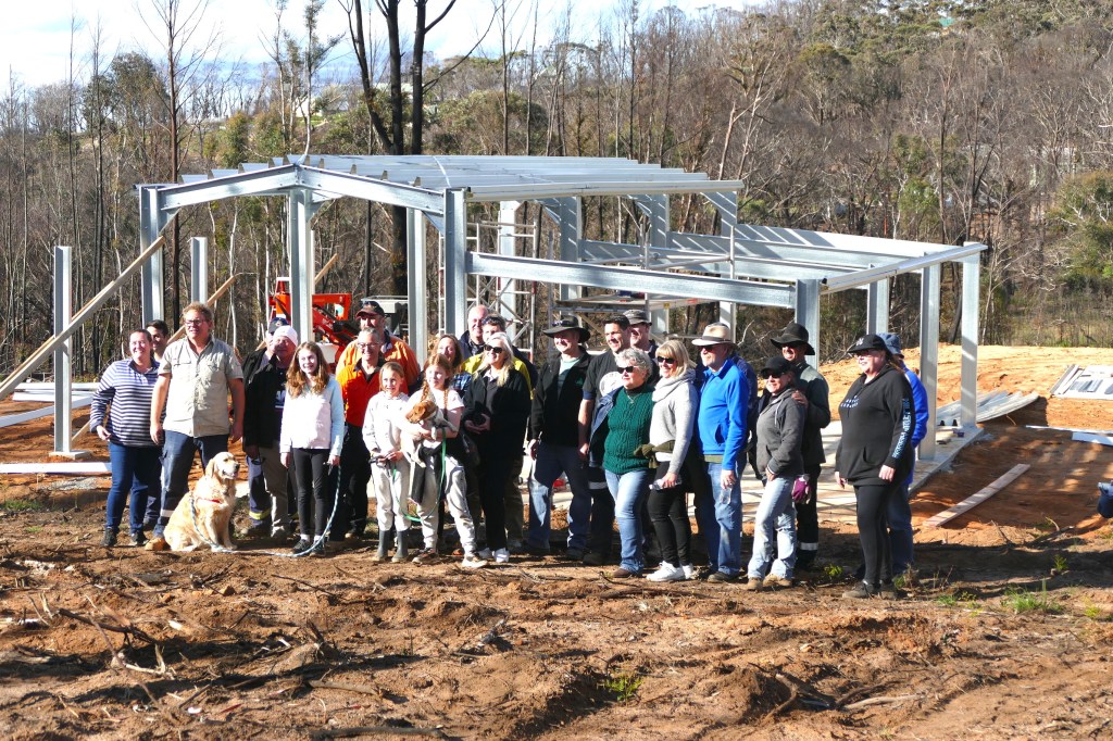 At tiny Dargan, near Lithgow in the Blue Mountains, we filmed 40 people coming together over a weekend to build a barn and shed for the Alexander family. Susan and Nick Alexander and daughter Jessica will move into the barn and live on their block as their house is rebuilt.