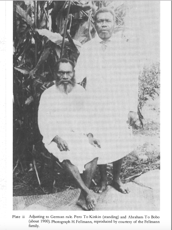“Their leader was the big man Pero ToKinkin from Raluana. He was also a good friend of Governor Hahl. Amongst the group was a 12-year-old boy. He was from around Balanataman near Maulapau and his name was Tinai. He was still alive in 1961. Salisbury records that although he was by now, a 90-year-old man and partly deaf, he could still remember the Masai and Cameron’s dance in Berlin. He could remember all the ports to Naples. He remembered also the Quality of German beer”.